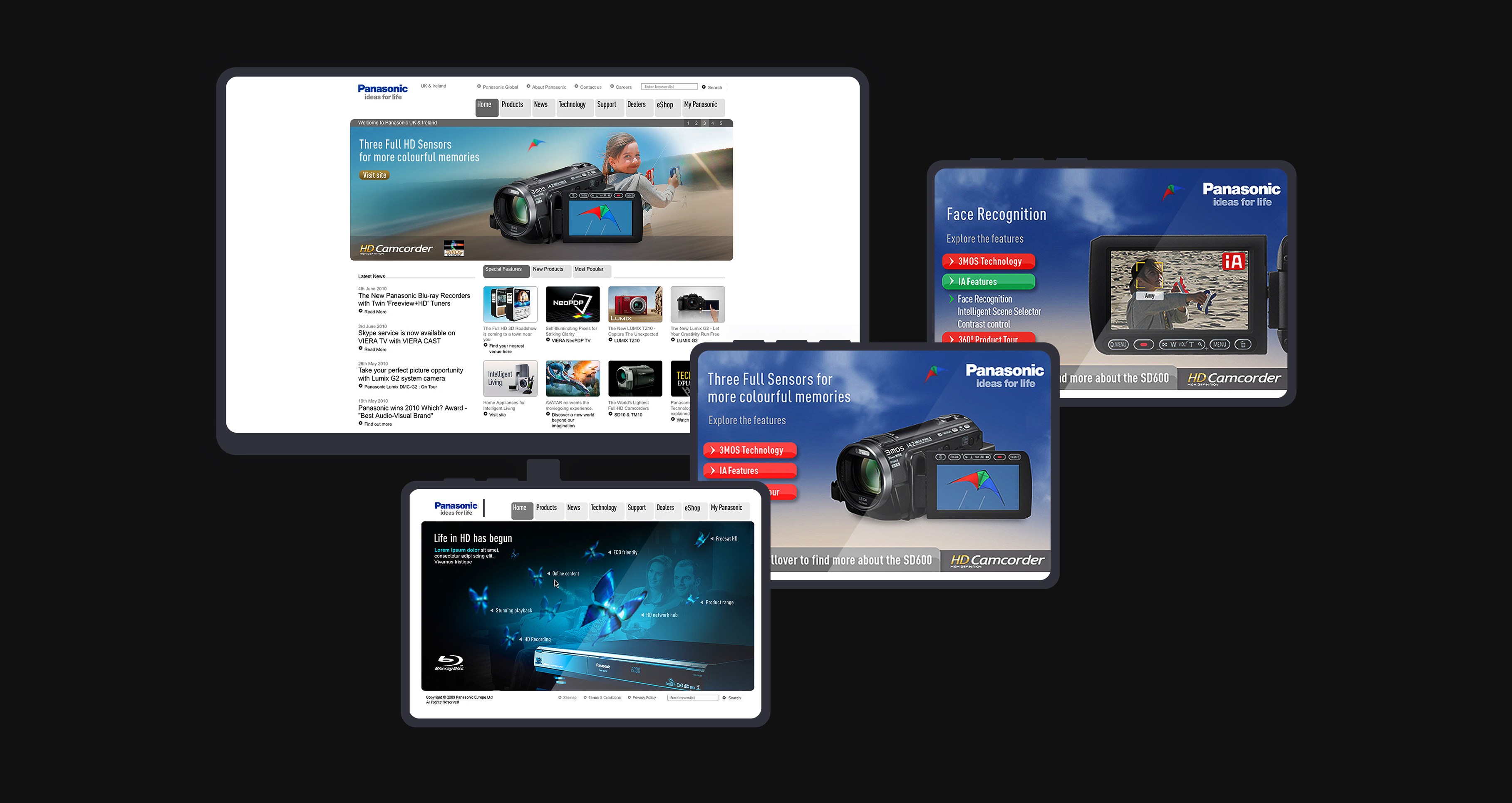 Varied creative for Panasonic websites, including digital support material for microsites, social media and animated banners for their white goods ranges.
