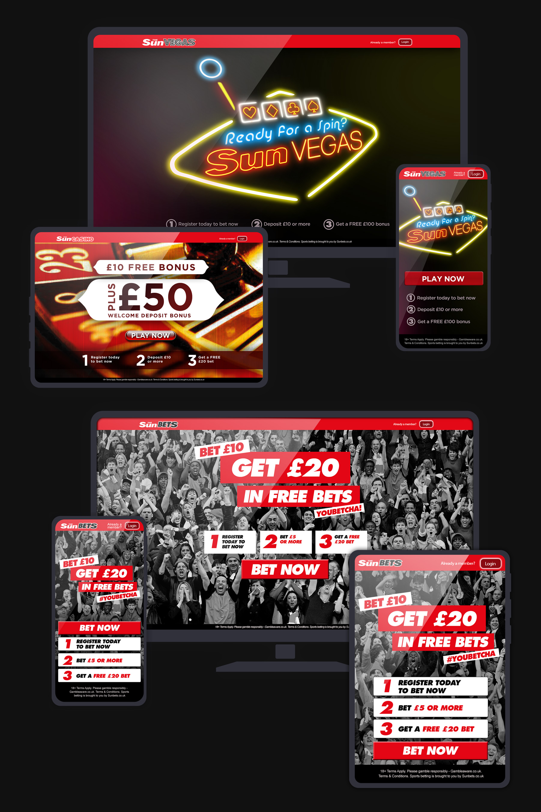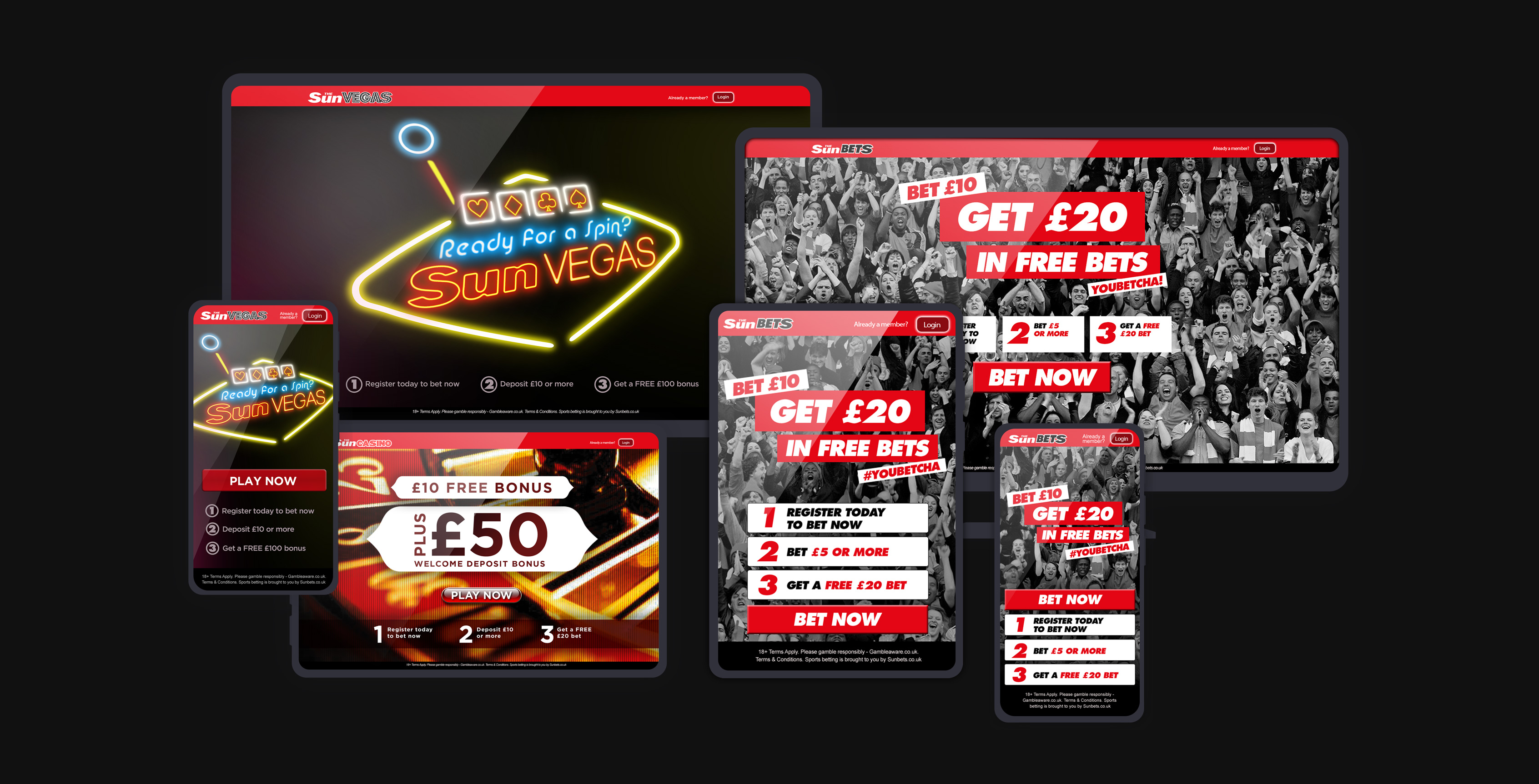 Varied creative and production work for The Sun, including the Sun Bets launch. This included landing pages, promotional launch emails, banners, desktop and mobile as well as varied promotional material.