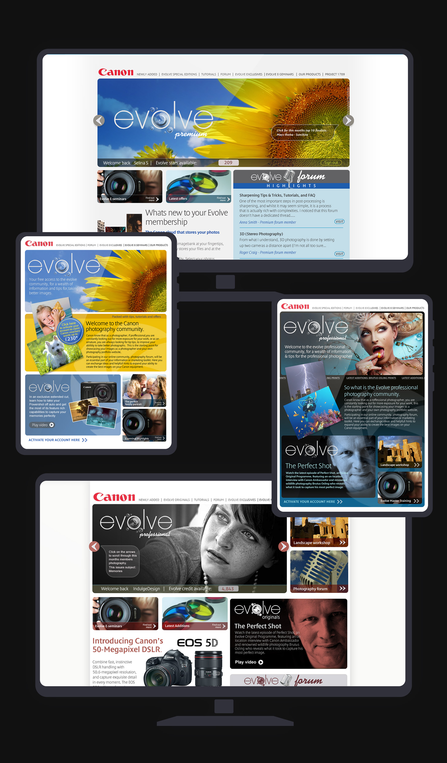 As the Creative Director for the Canon Evolve concept, I led a speculative pitch that aimed to transition Canon from a product-focused strategy to a narrative-driven approach. The Evolve initiative was conceived as a subscription-based content platform and social network, intended to reposition Canon from a heritage brand to a challenger and innovator in the industry. This initiative prompted a strategic reevaluation of Canon's direction, emphasising storytelling, content creation, and user-generated content (UGC) as core elements of their brand strategy.