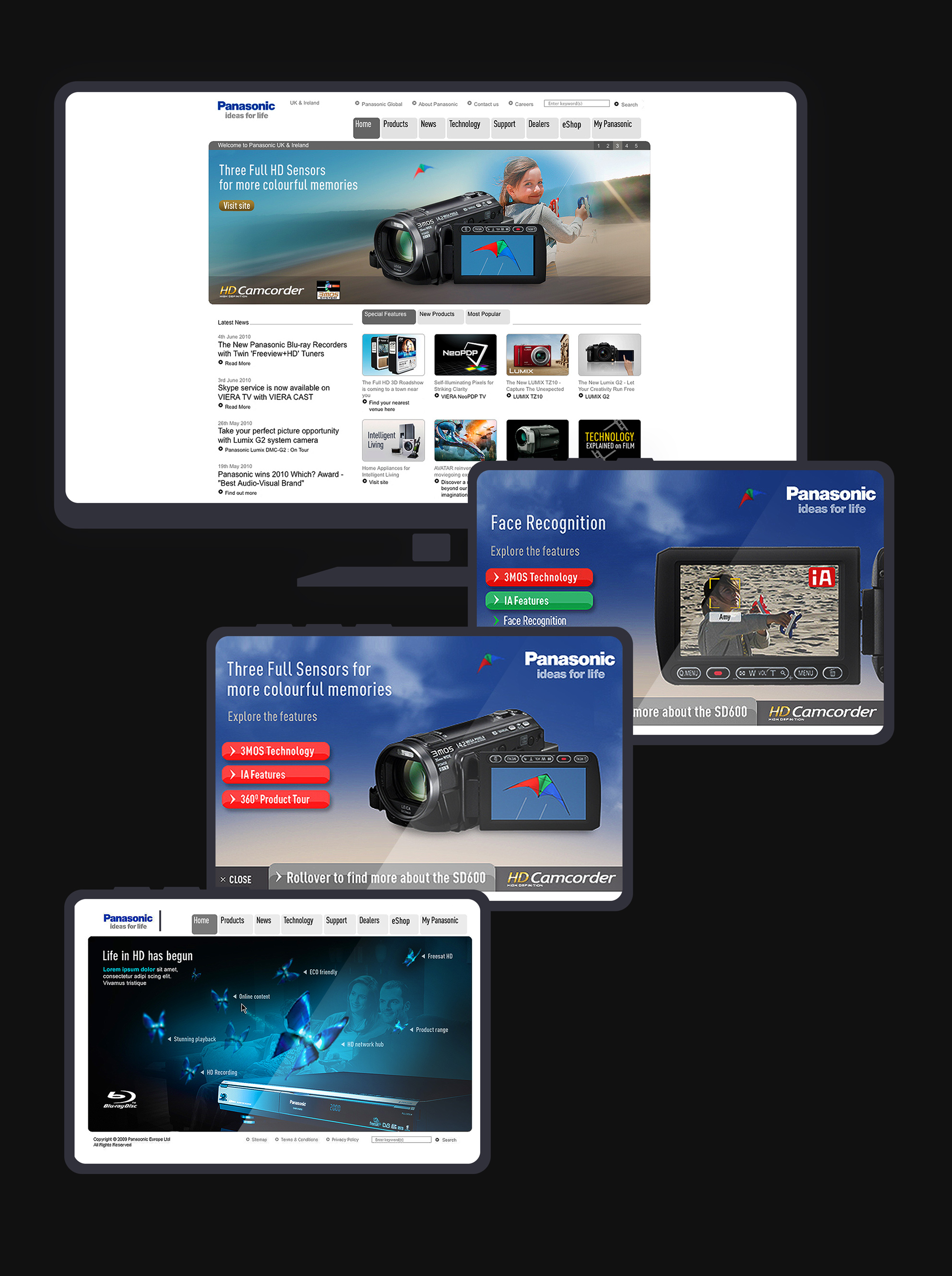 Varied creative for Panasonic websites, including digital support material for microsites, social media and animated banners for their white goods ranges.